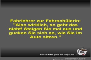 | Fahrlehrer zur Fahrschülerin Bild (31.02 KB) 2Lustiges → klasse Sprüche und Witze | Lustiges → klasse Sprüche und Witze | 26.04.24-14:56 | Fossy | |