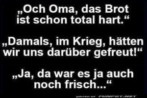 | Das Brot ist hart Bild (26.62 KB) 5Lustiges → klasse Sprüche und Witze | Lustiges → klasse Sprüche und Witze | 25.04.24-12:04 | Mausepfoetchen | |