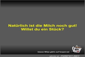| Natürlich ist die Milch noch gut! Bild (17.96 KB) 3Lustiges → klasse Sprüche und Witze | Lustiges → klasse Sprüche und Witze | 25.04.24-10:19 | Fossy | |
