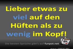 | Zu viel auf den Hüften Bild (68.97 KB) 7Lustiges → klasse Sprüche und Witze Diese Aussage ist unbestritten. Lieber etwas mehr auf den Rippen als Dürre im Kopf. | Lustiges → klasse Sprüche und Witze | 18.04.24-16:56 | ||