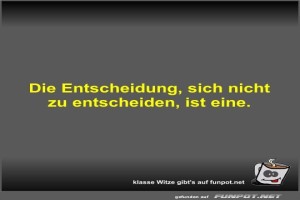 | Die Entscheidung, sich nicht zu entscheiden, ist eine Bild (19.45 KB) Lustiges → klasse Sprüche und Witze | Lustiges → klasse Sprüche und Witze | 18.04.24-18:19 | Fossy | ||