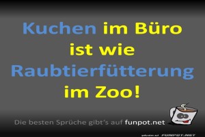 | Kuchen Bild (54.54 KB) 5Lustiges → klasse Sprüche und Witze Wenn es im Büro Kuchen gibt, trifft man plötzlich wieder Kollegen, die man schon ewig nicht mehr gesehen hat ;-) | Lustiges → klasse Sprüche und Witze | 18.04.24-16:56 | Fossy | |
