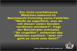 | Ein nicht unerfahrenes Mädchen bekennt im Beichtstuhl... Bild (44.22 KB) 1Lustiges → klasse Sprüche und Witze | Lustiges → klasse Sprüche und Witze | 19.10.-18:35 | Fossy | |