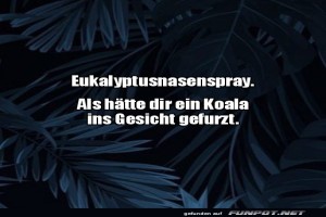 | Koala-Duft: Erfrischend oder erschreckend? Bild (66.11 KB) 2Lustiges → klasse Sprüche und Witze | Lustiges → klasse Sprüche und Witze | 20.10.-09:57 | Joe2007 | |