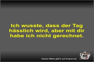 | Ich wusste, dass der Tag hässlich wird, aber mit dir habe... Bild (25.29 KB) 5Lustiges → klasse Sprüche und Witze | Lustiges → klasse Sprüche und Witze | 08.02.-18:03 | Fossy | |