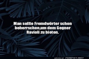 | Ravioli statt Revanche! Bild (73.08 KB) 1Lustiges → klasse Sprüche und Witze | Lustiges → klasse Sprüche und Witze | 10.11.-19:16 | ||