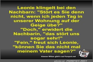 | Leonie klingelt bei den Nachbarn Bild (52.75 KB) 5Lustiges → klasse Sprüche und Witze | Lustiges → klasse Sprüche und Witze | 06.04.24-10:04 | Fossy | |