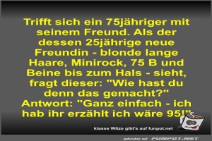 | Trifft sich ein 75jähriger mit seinem Freund Bild (55.28 KB) 1Lustiges → klasse Sprüche und Witze | Lustiges → klasse Sprüche und Witze | 03.04.24-12:56 | Fossy | |