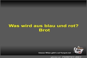 | Was wird aus blau und rot? Bild (15.48 KB) 2Lustiges → klasse Sprüche und Witze | Lustiges → klasse Sprüche und Witze | 28.03.24-18:15 | Fossy | |