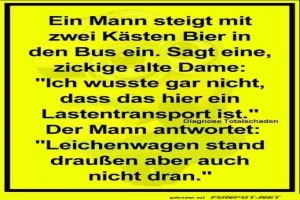 | Zwei Kästen Bier Bild (106.95 KB) 3Lustiges → klasse Sprüche und Witze | Lustiges → klasse Sprüche und Witze | 27.03.24-06:48 | ||