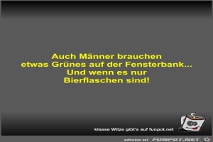 | Auch Männer brauchen etwas Grünes auf der Fensterbank Bild (21.25 KB) 1Lustiges → klasse Sprüche und Witze | Lustiges → klasse Sprüche und Witze | 26.03.24-10:21 | Fossy | |