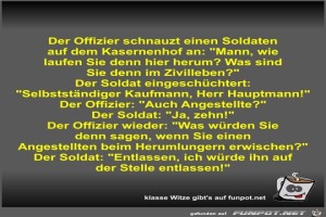 | Der Offizier schnauzt einen Soldaten auf dem Kasernenhof an Bild (55.51 KB) 2Lustiges → klasse Sprüche und Witze | Lustiges → klasse Sprüche und Witze | 25.03.24-11:20 | Fossy | |