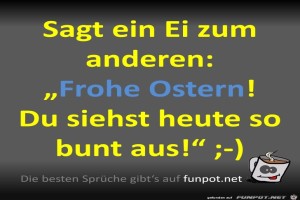 | Frohe Ostern Bild (65.87 KB) 9Lustiges → klasse Sprüche und Witze Da hat es wohl jemand mit dem Eier färben ziemlich wörtlich genommen ;-) Schönen Ostermontag wünsche ich dir. | Lustiges → klasse Sprüche und Witze | 25.03.24-14:53 | Fossy | |