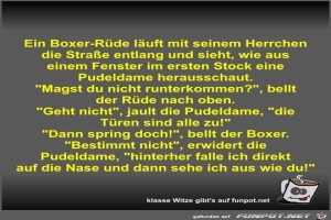 | Ein Boxer-Rüde läuft mit seinem Herrchen die Straße entlang Bild (53.25 KB) 4Lustiges → klasse Sprüche und Witze | Lustiges → klasse Sprüche und Witze | 26.03.24-17:15 | Fossy | |