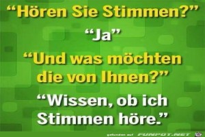 | Hören Sie Stimmen? Bild (30.33 KB) 2Lustiges → klasse Sprüche und Witze | Lustiges → klasse Sprüche und Witze | 09.03.24-16:58 | Russell | |