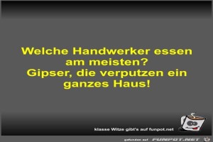| Welche Handwerker essen am meisten? Bild (25.74 KB) 4Lustiges → klasse Sprüche und Witze | Lustiges → klasse Sprüche und Witze | 09.03.24-14:46 | Fossy | |