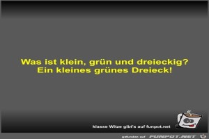 | Was ist klein, grün und dreieckig? Bild (18.98 KB) 3Lustiges → klasse Sprüche und Witze | Lustiges → klasse Sprüche und Witze | 06.03.24-16:43 | Fossy | |