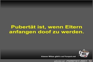 | Pubertät ist, wenn Eltern anfangen doof zu werden Bild (19.78 KB) 3Lustiges → klasse Sprüche und Witze | Lustiges → klasse Sprüche und Witze | 01.03.24-18:39 | Fossy | |