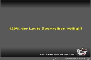 | 129% der Leute übertreiben völlig!!! Bild (14.9 KB) 4Lustiges → klasse Sprüche und Witze | Lustiges → klasse Sprüche und Witze | 22.01.24-12:41 | Fossy | |