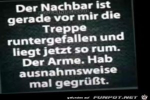 | Der Nachbar Bild (18.73 KB) 2Lustiges → klasse Sprüche und Witze | Lustiges → klasse Sprüche und Witze | 21.01.24-09:25 | Keule56 | |