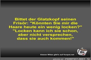 | Bittet der Glatzkopf seinen Frisör Bild (34.85 KB) 4Lustiges → klasse Sprüche und Witze | Lustiges → klasse Sprüche und Witze | 21.01.24-09:59 | Fossy | |