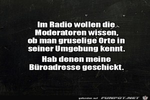 | gruseligster ort Bild (326.83 KB) 2Lustiges → klasse Sprüche und Witze | Lustiges → klasse Sprüche und Witze | 20.01.24-09:52 | kuddel56 | |