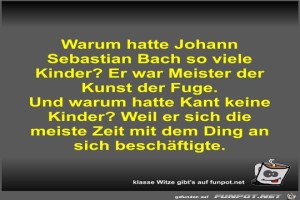 | Warum hatte Johann Sebastian Bach so viele Kinder? Bild (44 KB) 3Lustiges → klasse Sprüche und Witze | Lustiges → klasse Sprüche und Witze | 21.01.24-16:42 | Fossy | |