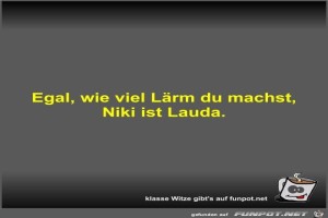 | Egal, wie viel Lärm du machst, Niki ist Lauda Bild (16.8 KB) 3Lustiges → klasse Sprüche und Witze | Lustiges → klasse Sprüche und Witze | 20.01.24-19:25 | Fossy | |
