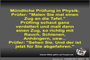 | Mündliche Prüfung in Physik Bild (48.57 KB) 3Lustiges → klasse Sprüche und Witze | Lustiges → klasse Sprüche und Witze | 16.01.24-19:00 | Fossy | |