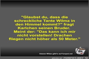 | Glaubst du, dass die schreckliche Tante Wilma in den... Bild (37.58 KB) 2Lustiges → klasse Sprüche und Witze | Lustiges → klasse Sprüche und Witze | 17.01.24-09:24 | Fossy | |