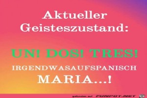| Aktueller Geisteszustand Bild (48.08 KB) 2Lustiges → klasse Sprüche und Witze | Lustiges → klasse Sprüche und Witze | 16.01.24-09:38 | ||