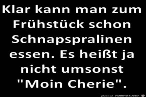 | Schnapspralinen zum Frühstück Bild (74.88 KB) Lustiges → klasse Sprüche und Witze | Lustiges → klasse Sprüche und Witze | 13.01.24-10:08 | |||