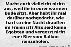 | Bier vom Balkon Bild (82.33 KB) 11Lustiges → klasse Sprüche und Witze | Lustiges → klasse Sprüche und Witze | 14.01.24-09:37 | Keule56 | |