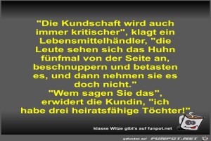 | "Die Kundschaft wird auch immer kritischer" Bild (51.13 KB) 5Lustiges → klasse Sprüche und Witze | Lustiges → klasse Sprüche und Witze | 12.01.24-10:13 | Fossy | |