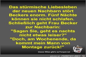 | Das stürmische Liebesleben der neuen Nachbarn stört Beckers Bild (56.32 KB) 6Lustiges → klasse Sprüche und Witze | Lustiges → klasse Sprüche und Witze | 01.01.24-12:27 | Fossy | |