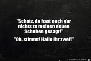 | Schuhe sind Rudeltiere Bild (44.41 KB) 4Lustiges → klasse Sprüche und Witze | Lustiges → klasse Sprüche und Witze | 02.01.24-07:54 | ||