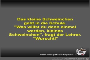 | Das kleine Schweinchen geht in die Schule Bild (30 KB) 3Lustiges → klasse Sprüche und Witze | Lustiges → klasse Sprüche und Witze | 01.01.24-10:02 | Fossy | |