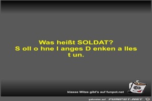 | Was heißt SOLDAT? Bild (17.89 KB) 2Lustiges → klasse Sprüche und Witze | Lustiges → klasse Sprüche und Witze | 21.12.23-18:33 | Fossy | |