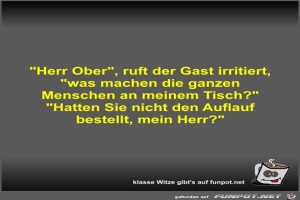 | "Herr Ober", ruft der Gast irritiert, Bild (30.28 KB) 1Lustiges → klasse Sprüche und Witze | Lustiges → klasse Sprüche und Witze | 04.12.23-09:24 | Fossy | |