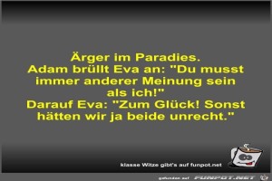 | Ärger im Paradies Bild (32.76 KB) 1Lustiges → klasse Sprüche und Witze | Lustiges → klasse Sprüche und Witze | 06.12.23-17:17 | Fossy | |
