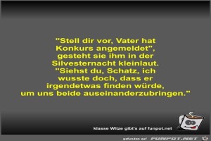 | "Stell dir vor, Vater hat Konkurs angemeldet", gesteht sie Bild (34.12 KB) 2Lustiges → klasse Sprüche und Witze | Lustiges → klasse Sprüche und Witze | 05.12.23-16:33 | Fossy | |
