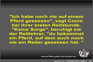 | "Ich habe noch nie auf einem Pferd gesessen" Bild (43.54 KB) von Fossy am 04. Dezember 2023 um 11:42 Uhr Lustiges → klasse Sprüche und Witze | Lustiges → klasse Sprüche und Witze | 04.12.23-11:42 | Fossy | ||