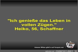 | Ich genieße das Leben in vollen Zügen Bild (22.22 KB) Lustiges → klasse Sprüche und Witze | Lustiges → klasse Sprüche und Witze | 17.11.23-14:46 | Fossy | ||