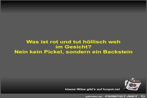 | Was ist rot und tut höllisch weh im Gesicht? Bild (19.28 KB) 1Lustiges → klasse Sprüche und Witze | Lustiges → klasse Sprüche und Witze | 19.11.23-10:06 | Fossy | |