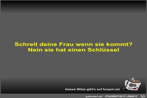 | Schreit deine Frau wenn sie kommt? Bild (17.85 KB) 3Lustiges → klasse Sprüche und Witze | Lustiges → klasse Sprüche und Witze | 17.11.23-19:39 | Fossy | |