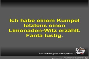 | Ich habe einem Kumpel letztens einen Limonaden-Witz erzählt Bild (26.82 KB) 4Lustiges → klasse Sprüche und Witze | Lustiges → klasse Sprüche und Witze | 25.10.23-18:59 | Fossy | |