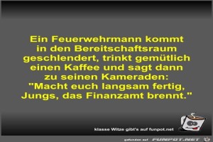 | Ein Feuerwehrmann kommt in den Bereitschaftsraum... Bild (41.12 KB) 4Lustiges → klasse Sprüche und Witze | Lustiges → klasse Sprüche und Witze | 16.10.23-17:23 | Fossy | |