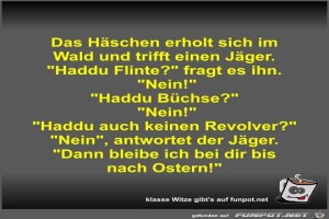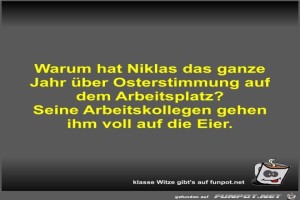 | Warum hat Niklas das ganze Jahr über Osterstimmung auf dem Bild (31.78 KB) 2Lustiges → klasse Sprüche und Witze | Lustiges → klasse Sprüche und Witze | 06.10.23-12:40 | Fossy | |