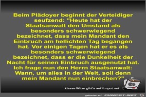 | Beim Plädoyer beginnt der Verteidiger seufzend Bild (63.81 KB) 4Lustiges → klasse Sprüche und Witze | Lustiges → klasse Sprüche und Witze | 06.10.23-16:25 | Fossy | |