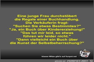 | Eine junge Frau durchstöbert die Regale einer Buchhandlung Bild (43.72 KB) 2Lustiges → klasse Sprüche und Witze | Lustiges → klasse Sprüche und Witze | 02.10.23-10:44 | Fossy | |